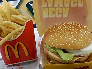 本当は私あまりお金かけたくないので100円のチーズバーガーとマックポークをそれぞれ1つずつの予定でしたが…なんとポテトMサイズ1つ、メガたまごを1つ注文しました