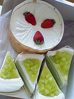 苺のショートケーキは嫌いな人はいないでしょうが、ベターすぎるのでメロンケーキをチョイス。
